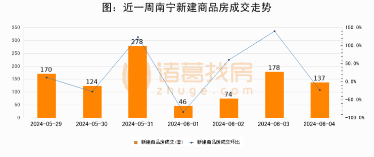 【南宁成交日报】06月04日新房成交137套、二手房168套;涨价房源27套