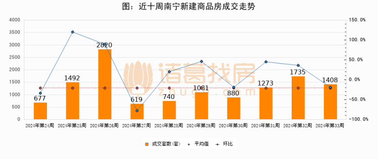 【南宁成交周报】第33周新房成交1408套,二手房556套,涨价房源187套