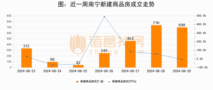 【南宁成交日报】08月29日新房成交698套、二手房177套;涨价房源29套