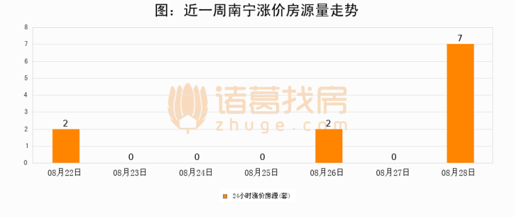 根据诸葛找房数据显示,南宁24小时涨价房源量为7套,较08月27日增加7套,环比上涨0%。与此同时,涨价房源占比小幅扩大,业主信心有所提升。