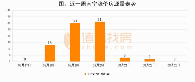 根据诸葛找房数据显示,南宁24小时涨价房源量为0套,较08月22日减少2套,环比下降100%。与此同时,涨价房源占比小幅回落,对于购房者来说是一个入市窗口期,购房者可抓住时机入市。