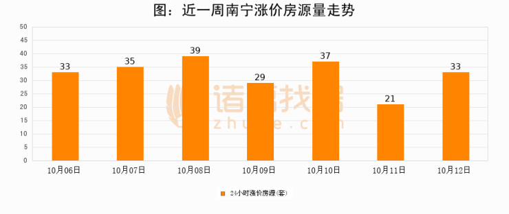 根据诸葛找房数据显示,南宁24小时涨价房源量为33套,较10月11日增加12套,环比上涨57.1%。与此同时,涨价房源占比小幅扩大,业主信心有所提升。