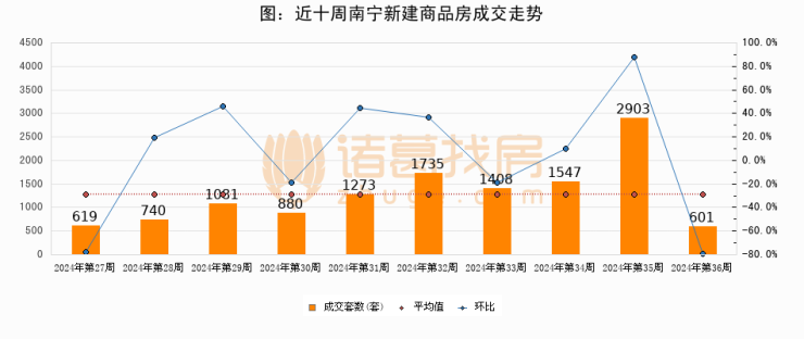 【南宁成交周报】第36周新房成交601套,二手房614套,涨价房源165套