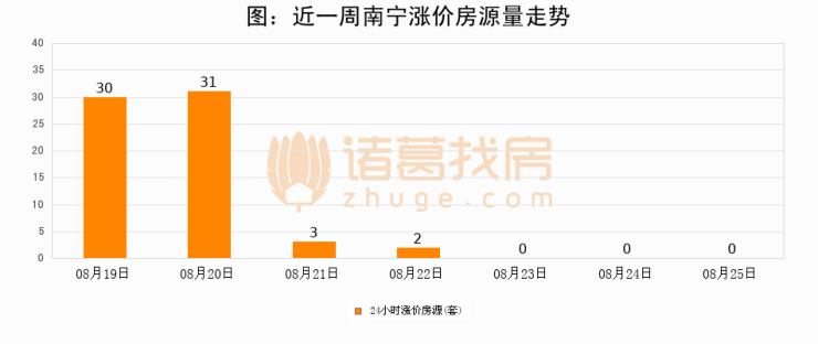 根据诸葛找房数据显示,南宁24小时涨价房源量为0套,较08月24日持平。