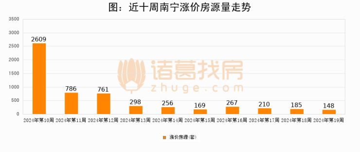 从调价房源来看,第18周南宁涨价房源148套,较上周下降20%。与此同时,18周涨价房源占比提升1.68个百分点,业主信心持续恢复。