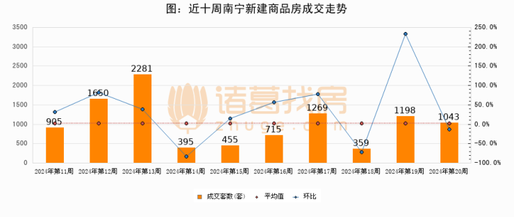 【南宁成交周报】第20周新房成交1043套,二手房730套,涨价房源237套