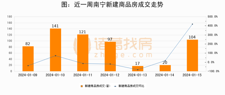 【南宁成交日报】01月15日新房成交104套、二手房89套;涨价房源44套