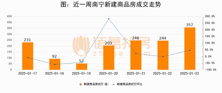 【南宁成交日报】01月23日新房成交357套、二手房213套;涨价房源18套