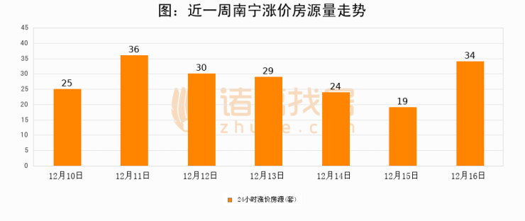 根据诸葛找房数据显示,南宁24小时涨价房源量为34套,较12月15日增加15套,环比上涨78.9%。与此同时,涨价房源占比小幅扩大,业主信心有所提升。