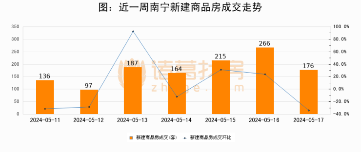 【南宁成交日报】05月17日新房成交176套、二手房120套;涨价房源29套
