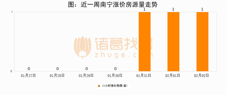 根据诸葛找房数据显示,南宁24小时涨价房源量为1套,较02月01日持平。