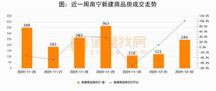 【南宁成交日报】12月02日新房成交244套、二手房399套;涨价房源33套
