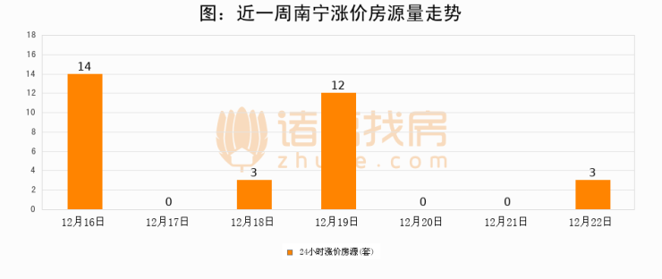 根据诸葛找房数据显示,南宁24小时涨价房源量为3套,较12月21日增加3套,环比上涨0%。与此同时,涨价房源占比小幅扩大,业主信心有所提升。