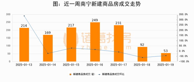 【南宁成交日报】01月19日新房成交53套、二手房3套;涨价房源11套