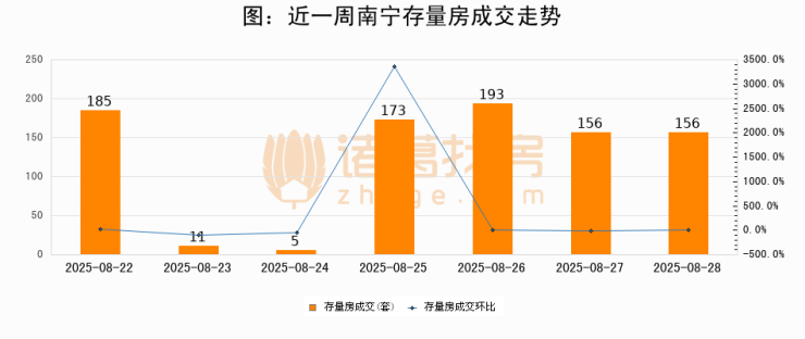 从存量房来看,2025年08月28日南宁存量房单日成交156套,比昨日持平。。从近一周存量房成交来看,南宁存量房日均成交套数为125套,08月28日单日成交156套,高于近一周平均水平24.8%。