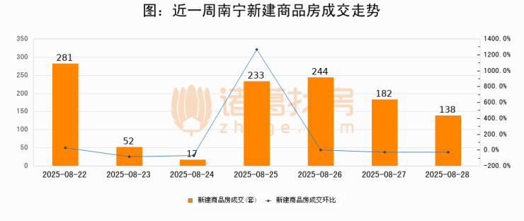 【南宁成交日报】08月28日新房成交138套、二手房156套;涨价房源31套