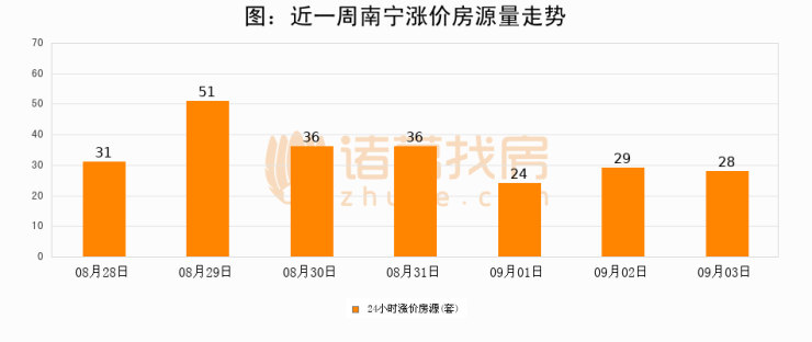 根据诸葛找房数据显示,南宁24小时涨价房源量为28套,较09月02日减少1套,环比下降3.4%。与此同时,涨价房源占比小幅回落,对于购房者来说是一个入市窗口期,购房者可抓住时机入市。
