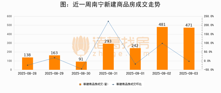 【南宁成交日报】09月03日新房成交471套、二手房130套;涨价房源28套