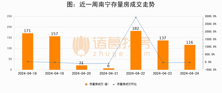 【南宁成交日报】04月24日新房成交172套、二手房116套;涨价房源15套