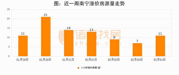 根据诸葛找房数据显示,南宁24小时涨价房源量为11套,较02月03日增加4套,环比上涨57.1%。与此同时,涨价房源占比小幅扩大,业主信心有所提升。