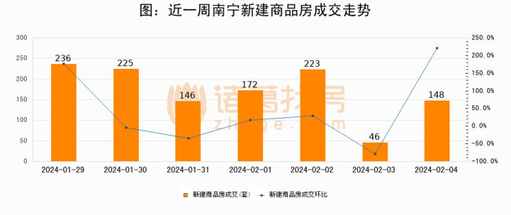 【南宁成交日报】02月04日新房成交148套、二手房75套;涨价房源11套