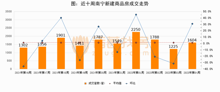 【南宁成交周报】第04周新房成交1604套,二手房1003套,涨价房源109套