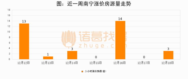 根据诸葛找房数据显示,南宁24小时涨价房源量为3套,较12月17日增加3套,环比上涨0%。与此同时,涨价房源占比小幅扩大,业主信心有所提升。