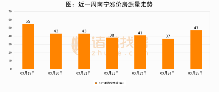 根据诸葛找房数据显示,南宁24小时涨价房源量为47套,较03月24日增加10套,环比上涨27%。与此同时,涨价房源占比小幅扩大,业主信心有所提升。