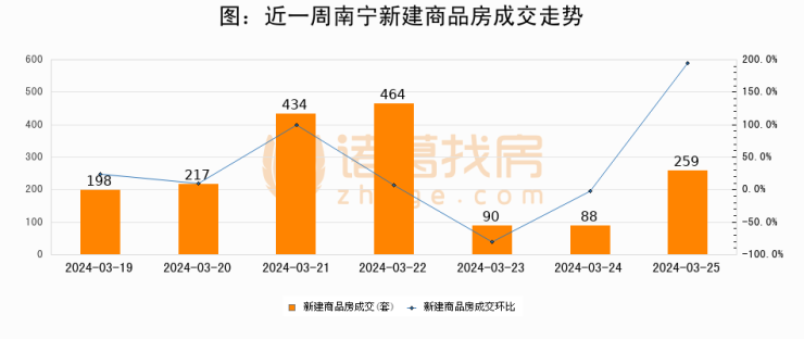 【南宁成交日报】03月25日新房成交259套、二手房162套;涨价房源47套