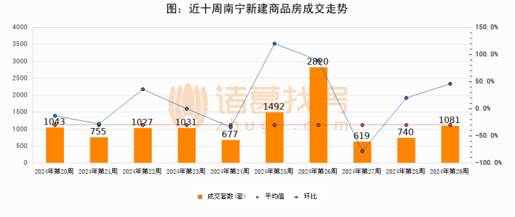 【南宁成交周报】第29周新房成交1081套,二手房1063套,涨价房源175套