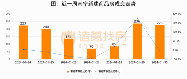 【南宁成交日报】01月30日新房成交225套、二手房73套;涨价房源21套