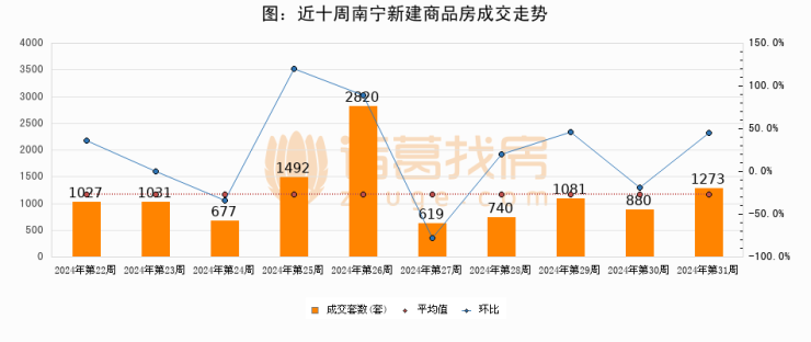 【南宁成交周报】第31周新房成交1273套,二手房322套,涨价房源256套