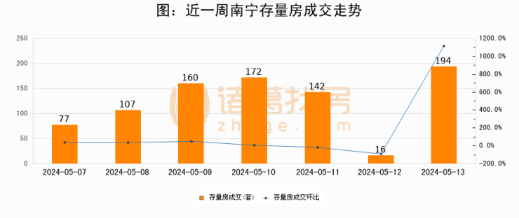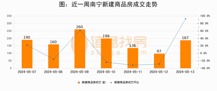 【南宁成交日报】05月13日新房成交187套、二手房194套;涨价房源102套