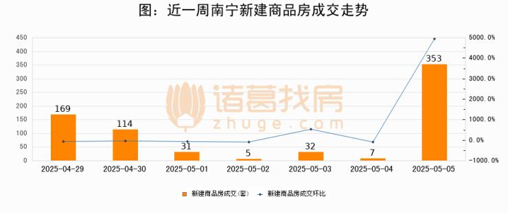 【南宁成交日报】05月05日新房成交353套;涨价房源44套