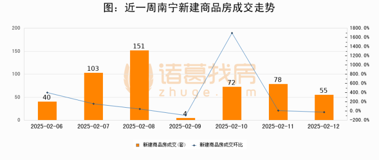 【南宁成交日报】02月12日新房成交55套、二手房77套;涨价房源17套