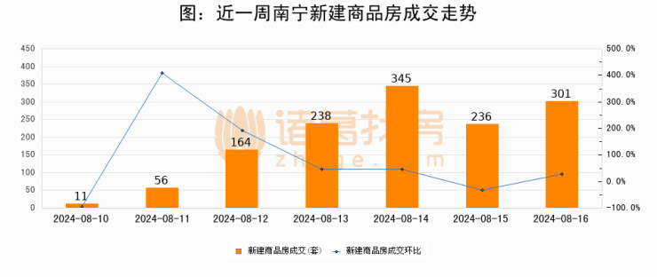 【南宁成交日报】08月16日新房成交301套、二手房155套;涨价房源24套