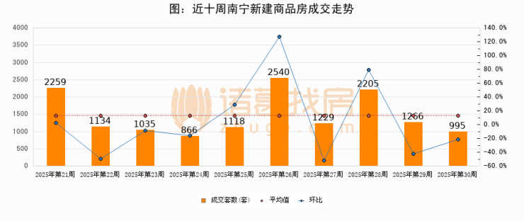 【南宁成交周报】第30周新房成交995套,二手房466套,涨价房源174套