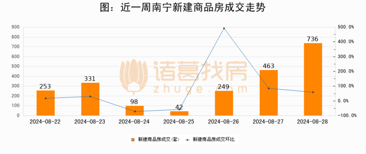 【南宁成交日报】08月28日新房成交736套、二手房167套;涨价房源26套