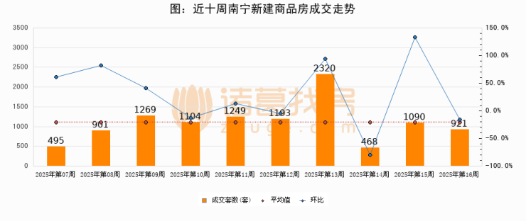 【南宁成交周报】第16周新房成交921套,二手房886套,涨价房源283套