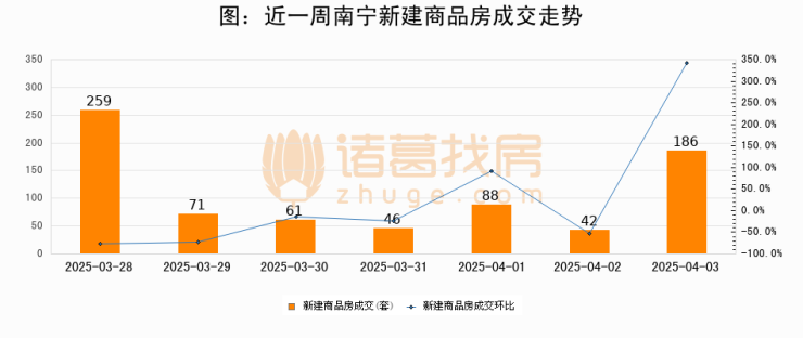 【南宁成交日报】04月03日新房成交186套;涨价房源30套