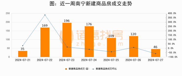 【南宁成交日报】07月27日新房成交46套、二手房21套;涨价房源25套