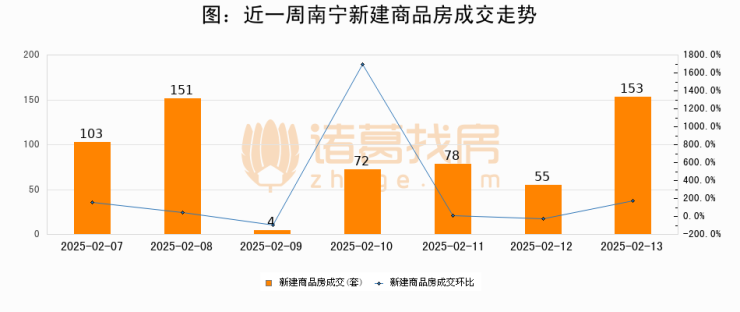 【南宁成交日报】02月13日新房成交153套、二手房63套;涨价房源13套