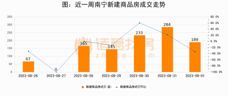 【南宁成交日报】09月01日新房成交189套、二手房120套;涨价房源25套