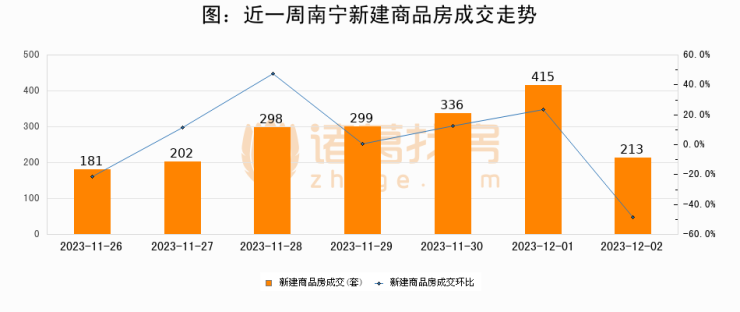【南宁成交日报】12月02日新房成交213套、二手房10套;涨价房源8套