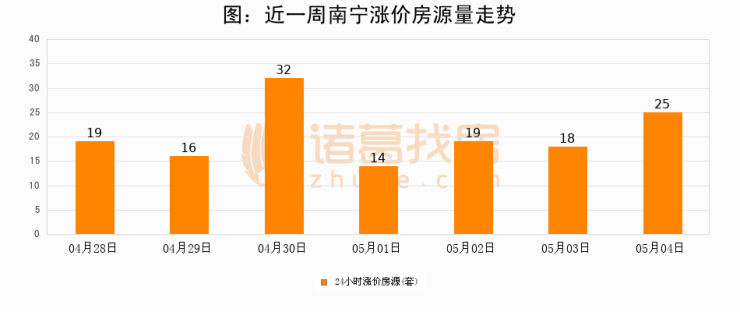 根据诸葛找房数据显示,南宁24小时涨价房源量为25套,较05月03日增加7套,环比上涨38.9%。与此同时,涨价房源占比小幅扩大,业主信心有所提升。