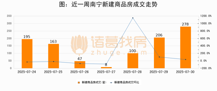 【南宁成交日报】07月30日新房成交278套、二手房103套;涨价房源24套